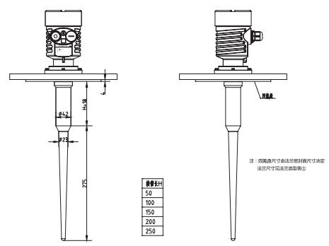 SKD52防腐棒式雷達物位計外型尺寸圖
