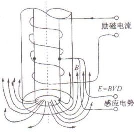 插入式電磁流量計(jì)工作原理圖解 插入式電磁流量計(jì)原理與管道式電磁流量計(jì)一樣也是基于法拉第電磁感應(yīng)定律。當(dāng)導(dǎo)電液體以平均流速V且垂直于磁場強(qiáng)度為B磁力線方向通過距離為L的兩電極時(shí),在電極間就產(chǎn)生相對的電動勢E,法拉第電磁感應(yīng)定律為:
