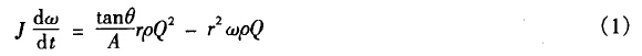 式中J為葉片轉(zhuǎn)動(dòng)慣量,θ為葉與軸線之間的夾角,r為渦輪葉片的平均半徑,A為管道流量面積,ρ為流體密度,ω為渦輪的旋轉(zhuǎn)角加速度,Q為通過管道流量。