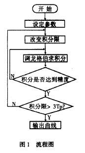 對特定的渦輪流量計(jì)和不同的脈動(dòng)流,可編程計(jì)算出(2)式在脈動(dòng)周圍內(nèi)各離散點(diǎn)所對應(yīng)的ω(t),據(jù)此計(jì)算可畫出ω(t)曲線,其流程圖如圖1: