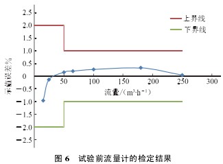 天然氣作為一種高效清潔能源,其需求量隨著全球低碳經(jīng)濟(jì)的發(fā)展呈現(xiàn)快速增長(zhǎng)趨勢(shì),預(yù)計(jì)2020 年國(guó)內(nèi)天然氣需求量將達(dá) 3 000×108m3[1-4]。進(jìn)口渦輪流量計(jì)一直占據(jù)著高壓管道貿(mào)易計(jì)量市場(chǎng),而國(guó)產(chǎn)渦輪流量計(jì)通常應(yīng)用于低壓管道,用戶主要為城市燃?xì)獾墓I(yè)用戶。 隨著工業(yè)過程控制自動(dòng)化的實(shí)施及輸氣管道的大量建設(shè),對(duì)貿(mào)易計(jì)量所需的渦輪流量計(jì)和具有強(qiáng)大功能的流量計(jì)算機(jī)的需求量也不斷增大,因此,擁有自主知識(shí)產(chǎn)權(quán)且滿足工業(yè)性應(yīng)用要求的精度好的高壓渦輪流量計(jì)與流量計(jì)算機(jī),對(duì)實(shí)現(xiàn)管道設(shè)備的國(guó)產(chǎn)化,打破國(guó)外技術(shù)壟斷,保障管道安全、經(jīng)濟(jì)、高效運(yùn)行,具有十分重要的意義。為了評(píng)價(jià)國(guó)產(chǎn)化流量計(jì)在實(shí)際運(yùn)行過程中的準(zhǔn)確度、可重復(fù)性、穩(wěn)定性及安全性等指標(biāo),為后續(xù)新建管道的推廣應(yīng)用及流量計(jì)的制造、改進(jìn)提供依據(jù),對(duì) 4 臺(tái)國(guó)產(chǎn) 氣體高壓渦輪流量計(jì)和FC 型流量計(jì)算機(jī)進(jìn)行了現(xiàn)場(chǎng)工業(yè)性試驗(yàn)。 1 高壓氣體渦輪流量計(jì) 1.1 工作原理 高壓氣體渦輪流量計(jì)是一種帶機(jī)械計(jì)數(shù)器并用于準(zhǔn)確測(cè)量氣體流量的流量計(jì),其工作原理:當(dāng)高壓氣流進(jìn)入流量計(jì)時(shí),首先經(jīng)過整流器整流并加速,在流體的作用下,渦輪克服阻力矩開始轉(zhuǎn)動(dòng);當(dāng)力矩達(dá)到平衡時(shí),渦輪轉(zhuǎn)速穩(wěn)定,此時(shí)其轉(zhuǎn)速與氣體工況流量成正比,并通過齒輪減速傳動(dòng);磁耦合聯(lián)接驅(qū)動(dòng)字輪計(jì)數(shù)器轉(zhuǎn)動(dòng),直接累積氣體的工況體積總量。 因?yàn)橥ㄟ^渦輪的流量與渦輪轉(zhuǎn)速成正比,所以高頻信號(hào)脈沖輸出頻率與渦輪轉(zhuǎn)速存在以下關(guān)系[7]: 綜上所述,儀表系數(shù)K 除與渦輪導(dǎo)程、葉片數(shù)、葉片寬度、螺旋升角、流量計(jì)流體通道等結(jié)構(gòu)因素有關(guān)外,還與介質(zhì)流體黏性、軸承本身阻尼、軸承潤(rùn)滑油黏度等有關(guān),若以上其中一種或幾種相關(guān)因素發(fā)生改變,則儀表系數(shù)K 也會(huì)相應(yīng)改變,因此流量計(jì)應(yīng)通過線性檢定等試驗(yàn)方式進(jìn)行最終設(shè)計(jì)確認(rèn)。 1.2 性能測(cè)試 以 EN 12261-2002《Gas meters - Turbine gasmeters》[8]和 OIML R137-1-2006《氣體流量計(jì)》作為流量計(jì)產(chǎn)品的研制依據(jù),并嚴(yán)格按照標(biāo)準(zhǔn)進(jìn)行性能測(cè)試,主要包括:耐久性試驗(yàn)、彎矩與扭矩試驗(yàn)、短時(shí)過載試驗(yàn)、擾動(dòng)試驗(yàn)以及高低溫性能測(cè)試等。 1.2.1 耐久性測(cè)試 渦輪流量計(jì)進(jìn)行耐久性測(cè)試的目的在于確認(rèn)流量計(jì)在指定條件下的計(jì)量性能是否符合分段要求[9],即: 確認(rèn)各種安裝位置是否影響測(cè)試樣機(jī)的計(jì)量性能,安裝位置可分為水平方向、垂直向上與垂直向下。在不同安裝位置情況下,樣機(jī)在耐久性測(cè)試前后指示誤差的變化量不得超過式(4)要求值的 1/3。 以 DN80-G100 樣機(jī)為例,進(jìn)行耐久性測(cè)試說明。首先將 3 臺(tái)樣機(jī)分別安裝在同一管道的不同位置,管道內(nèi) 0.8 MPa 壓縮氣體以樣機(jī)最大流量進(jìn)行循環(huán)運(yùn)行,以每 1 000 h 為運(yùn)行單位,將樣機(jī)拆卸并在標(biāo)準(zhǔn)氣體流量裝置上進(jìn)行相應(yīng)性能測(cè)試,得到 7 000 h 運(yùn)行測(cè)試數(shù)據(jù)(圖 1)。 結(jié)果表明:該測(cè)試樣機(jī)滿足耐久性測(cè)試要求,指示誤差的變化量未超過最大允許誤差的 1/3;軸承經(jīng)過長(zhǎng)時(shí)間運(yùn)行磨合更趨于穩(wěn)定,長(zhǎng)期運(yùn)行后非線性段更趨于理想特性曲線。 1.2.2 彎扭矩測(cè)試 對(duì)于高壓渦輪流量計(jì),應(yīng)該詳細(xì)說明流量計(jì)所需的彎曲與扭力力矩的保護(hù)水平[2]。該數(shù)據(jù)可以通過試驗(yàn)直接獲得(圖 2,其中直管段 1 連接氣體流量標(biāo)準(zhǔn)裝置,圖 2a 中在直管段 2 預(yù)先確定的力臂L 位置附加垂直方向的力F 而形成彎矩M;圖 2b 中在直管段 2 側(cè)面預(yù)先確定的力臂L 位置附加垂直方向的力F 而形成扭矩T,而彎矩與扭矩均是作用于流量計(jì)入口與出口法蘭處)。由于該項(xiàng)測(cè)試主要是針對(duì)流量計(jì)強(qiáng)度的校核,為了使測(cè)試結(jié)果更具說服力,并且提高其可靠性,將鋁合金殼體的中低壓渦輪流量計(jì) DN80-G100 用于此次測(cè)試。測(cè)試過程中按照 EN 12261-2002 表 10中要求施加 1 倍、2 倍直至 4 倍(即力矩為 3 040 N·m)的砝碼F,未發(fā)現(xiàn)流量計(jì)殼體有任何異常變化。施加砝碼F 時(shí)及卸下砝碼之后得到的指示誤差與施加砝碼F 之前的指示誤差無明顯變化,實(shí)際變化量均在最大允許誤差的 1/3 以內(nèi)。 1.2.3 常壓與高壓試驗(yàn)對(duì)比 為了確認(rèn)高壓渦輪流量計(jì)在高壓氣體介質(zhì)中計(jì)量性能是否滿足工業(yè)貿(mào)易計(jì)量要求,將多臺(tái) DN80-G160樣機(jī)發(fā)往國(guó)家石油