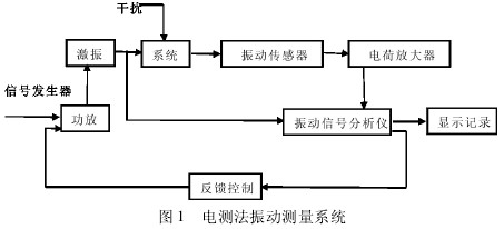 根據(jù)上述內(nèi)容可知,本文振動(dòng)測(cè)量系統(tǒng)研究中采用的是電測(cè)法,這是振動(dòng)測(cè)量中常用方法,與光測(cè)法和機(jī)械法比較而言,該方法具有使用頻率范圍寬,動(dòng)態(tài)范圍廣,測(cè)量靈敏度高等優(yōu)勢(shì),而且電測(cè)法能夠適用于不同的測(cè)振傳感器,而信號(hào)也便于被記錄、處理和傳送。由此,本文中的振動(dòng)測(cè)量系統(tǒng)主要由:振動(dòng)傳感器、電荷放大器、信號(hào)分析儀等構(gòu)成,如圖1所示。