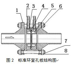 ①?圖 2標(biāo)準(zhǔn)環(huán)室孔板節(jié)流裝置結(jié)構(gòu)圖