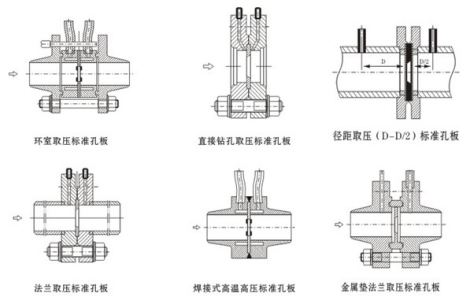 ②各種孔板流量計(jì)的結(jié)構(gòu)簡(jiǎn)圖