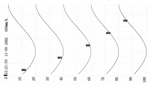 •每隔100mm打印一次刻度值、當(dāng)前時(shí)間和走紙速度
